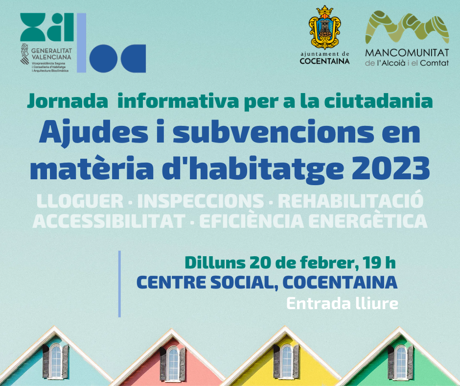 La oficina Xaloc de la Mancomunitat de l’Alcoià i el Comtat ha preparado unas jornadas en los municipios de las comarcas para que toda la ciudadanía pueda conocer y acceder a las ayudas y subvenciones en materia de vivienda de 2023.