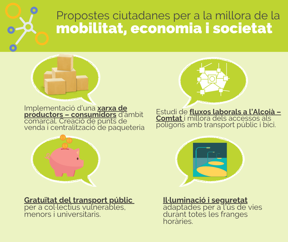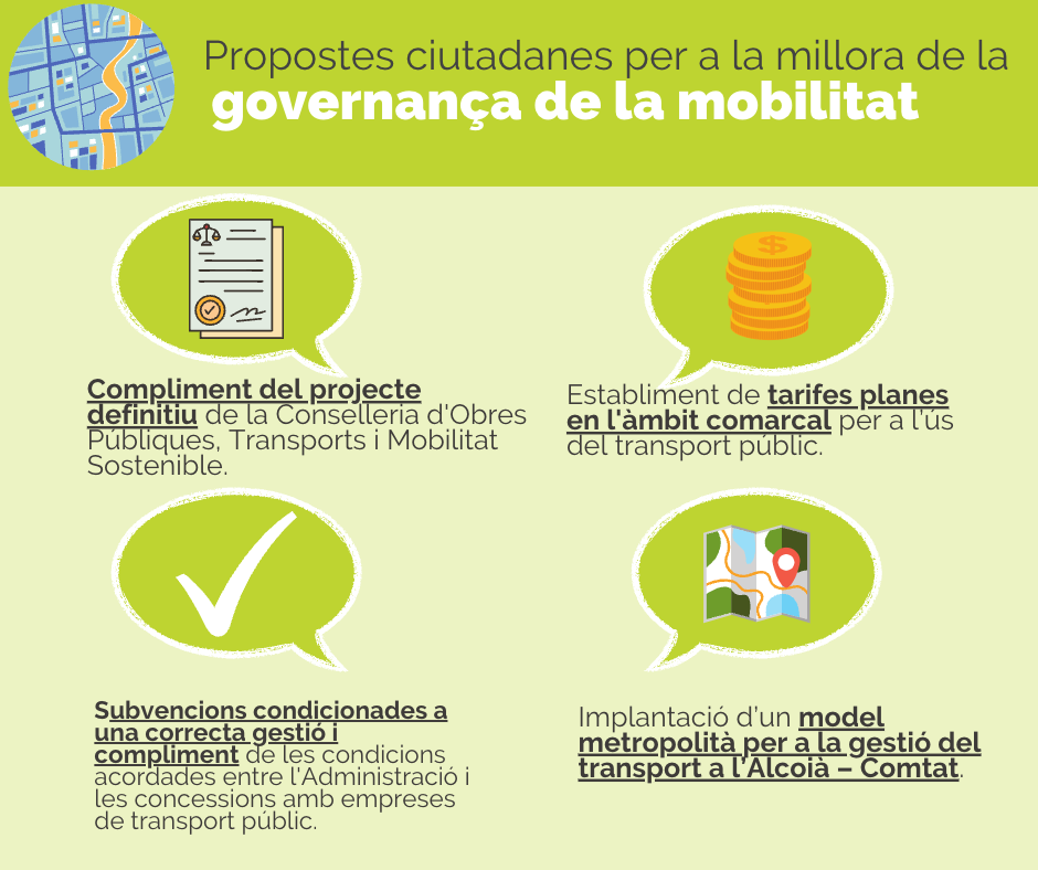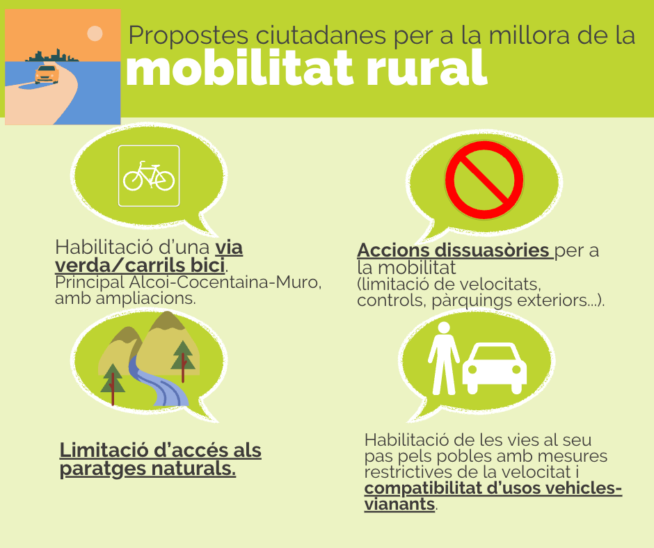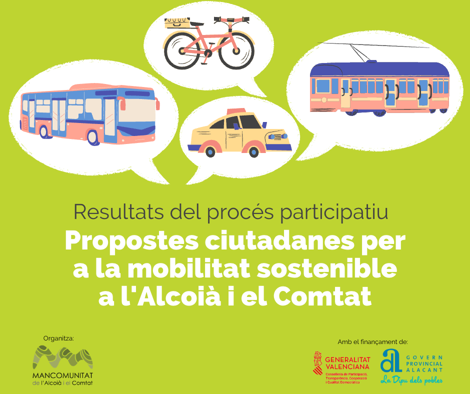 La Mancomunitat de l’Alcoià i el Comtat va dur a terme en setembre i octubre un procés participatiu sobre mobilitat sostenible a les comarques, del qual s’han extret una sèrie de propostes ciutadanes que defineixen la mobilitat que volem.
