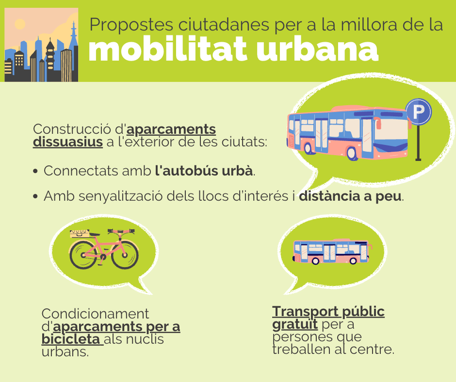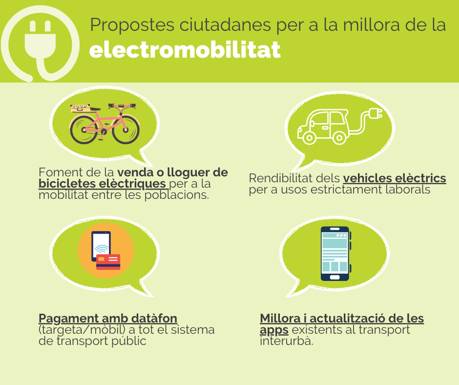 Les propostes s’agrupen en diferents blocs: mobilitat urbana, mobilitat rural, governança, electromobilitat i mobilitat, economia i societat.